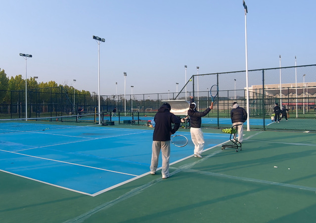 在乒乓球馆内,胡桃老师密切关注学生的技术动作,围绕发球的抛球角度、拉球的腰腿协调性以及步法的快速移动等关键环节进行示范讲解与逐一纠正。“注意迎前动作,体会摩擦感觉”的指导声与清脆的击球声此起彼伏。网球场上,姚瑶瑶老师则重点指导学生发球的鞭打动作及底线击球的稳定性,不断调整学生的手臂姿势,强调“动力链”的顺畅传导。参训学生精神集中,认真完成每一项技术演练,汗水浸湿运动服,展现出体育学院学子奋发向上、刻苦钻研的精神风貌。