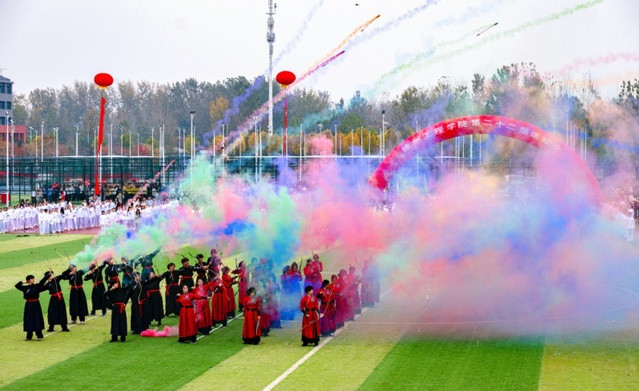 开幕式上举行了庄严的升旗仪式。全体人员起立,升国旗、齐唱国歌,鲜艳的五星红旗在东校区田径场上空冉冉升起。裁判员代表和运动员代表分别宣誓。精彩纷呈的文体展演环节,从气势恢宏的舞龙到古韵新风的射艺,再到动感现代的健身操排舞与广播操,运动的青春活力感染着在场每一个人,彰显了我校体育文化兼容并蓄的广度与一脉相承的深度。
