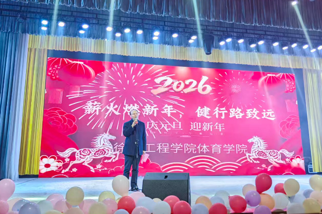为营造喜庆祥和的迎新氛围,彰显体育学院学子蓬勃向上的青春风采,12月19日,徐州工程学院体育学院2026年元旦联欢晚会在学生剧场精彩启幕。学院党委书记刘洪民,副书记陈益群、副院长张占平等领导与全院师生欢聚一堂,共度辞旧迎新的欢乐时刻。