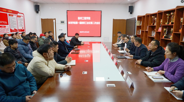 依据《学校教职工代表大会规定》、《中国工会章程》和《徐州工程学院二级学院教职工代表大会实施办法》的有关规定,体育学院于2025年12月24日召开第一届教职工代表大会第二次会议。学院领导班子全体成员和全体教职工代表参加会议。副院长付常喜主持会议。