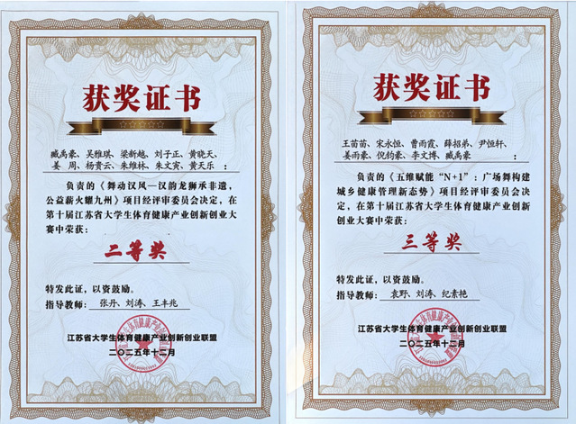 近日,在江苏科技大学举办第十届江苏省大学生体育健康产业创新创业大赛中,徐州工程学院体育学院师生凭借扎实的专业功底与创新的项目设计,在赛事中斩获二等奖、三等奖各1项,再次展现了学院在体育健康产业创新创业领域的强劲实力。