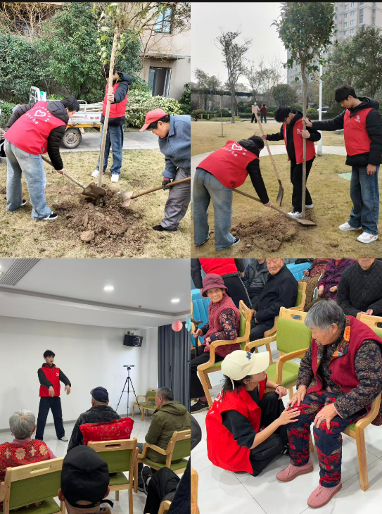 在新元社区,体育学院的青年志愿者们积极投身植树护绿实践活动,用汗水浇灌希望,用行动诠释担当。活动现场,同学们分工明确、配合默契,挥锹挖坑、扶苗培土、提水浇灌,每一个环节都认真细致、干劲十足,展现出昂扬向上的青春风貌,赢得了社区工作人员的一致好评。此次活动不仅增强了同学们的环保意识和责任担当,更在实践中深化了体院学子服务社会、守护绿水青山的坚定信念。