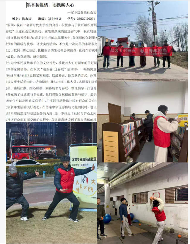 本次征文活动以“我的寒假雷锋日记”为主题,鼓励学生以第一人称视角,记录寒假期间参与志愿服务、社会实践的真实经历与感悟。同学们踊跃投稿,作品内容丰富、情感真挚:有的同学记录返乡后主动参与红色纪念馆义务讲解员;有的同学参与社区写春联、送春联活动;还有的同学参与社区全民健身志愿服务活动……一篇篇“雷锋日记”不仅是文字的表达,更是体院学子以实际行动践行雷锋精神的生动写照。